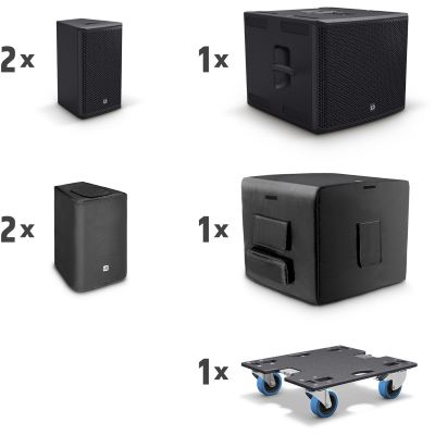 - Inklusive gepolsterter Schutzhüllen und Rollbrett für Subwoofer