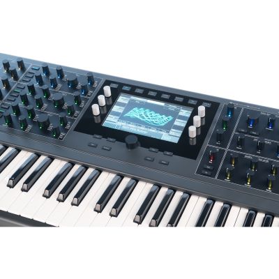 - Waveform: Waveform mit bis zu 8 simultanen Wellenformen pro Oszillator im Detuned- oder Chordalmodus mit Hard-Sync, Warp, PWM sowie pitchable Noise